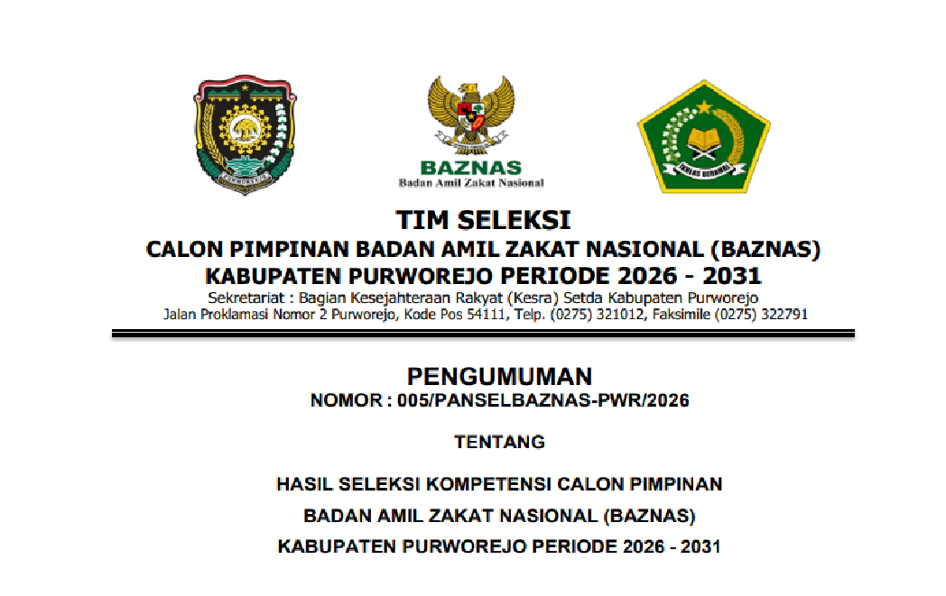 - Hasil Resmi Tahapan Seleksi Kompetensi Calon Pimpinan Baznas